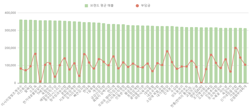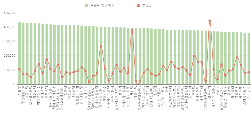 평균 매출 보다 높은 브랜드를 순위 정리하였습니다.