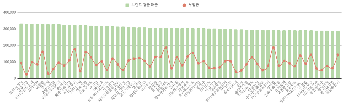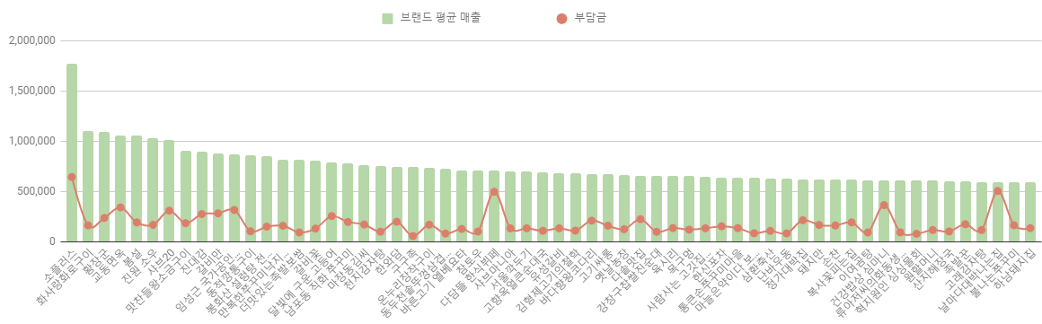 업종 파악을 위해 조금 더 도움이 될 수 있도록 평균 매출과 부담금을 같이 표시하였다.