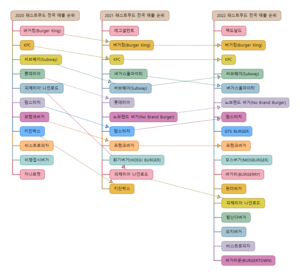 패스트푸드 프랜차이즈 브랜드 매출 순위를 알아보자.