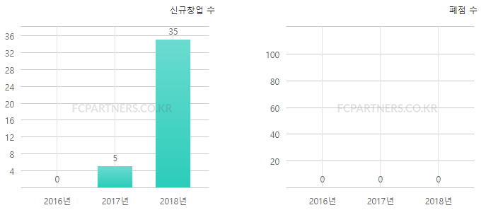 35개의 가맹점이 창업을 하였고 0개의 가맹점이 폐점 하였습니다.
