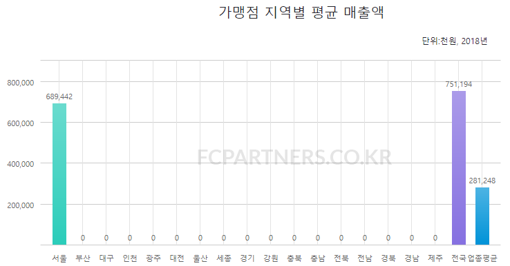 서울지역 가맹점평균 매출은 업종평균매출 보다 높은 것으로 확인됩니다.