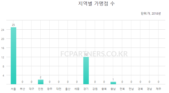 서울:25개, 인천:2개, 경기:12개, 충남:1개 가맹점을 보유 하고 있고