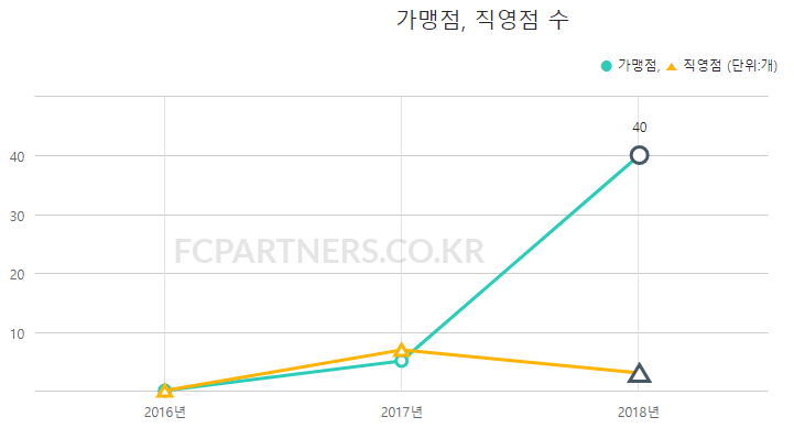 40개의 가맹점과 3개의 직영점을 보유하고 있습니다.