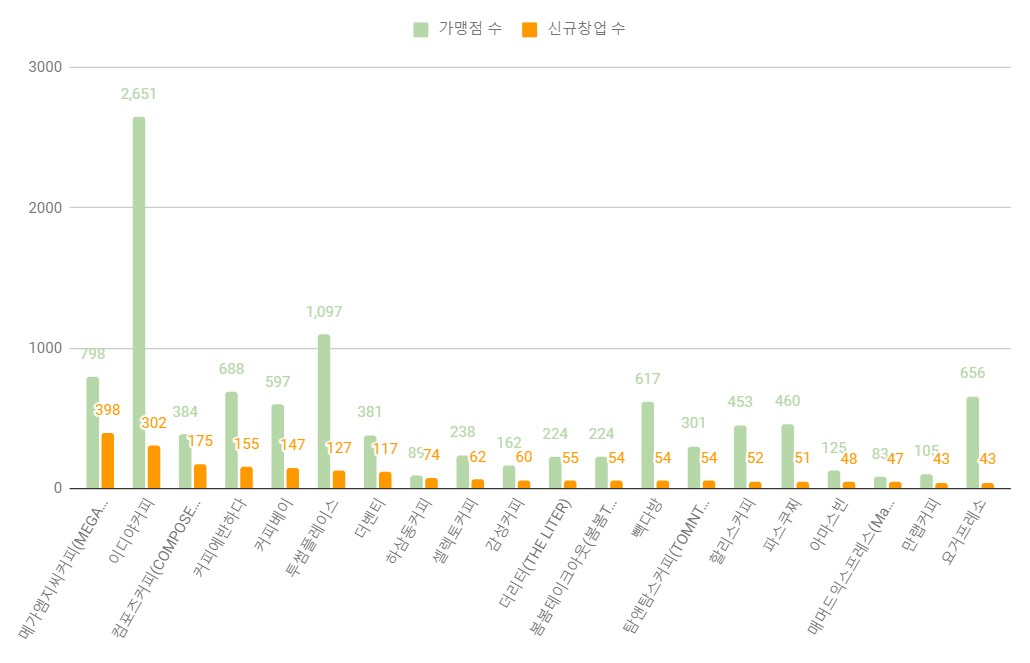 | no | 브랜드명 | 사업연도 | 가맹점 수 | 브랜드 평균 매출 (단위: 천 원) |