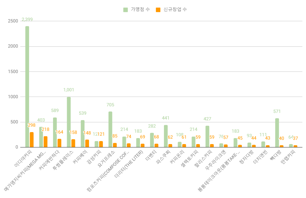 커피 프랜차이즈 브랜드 매출 순위를 알아보자